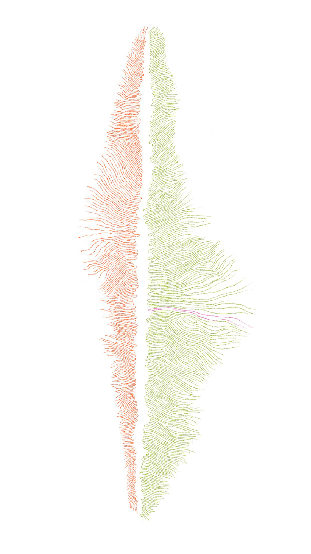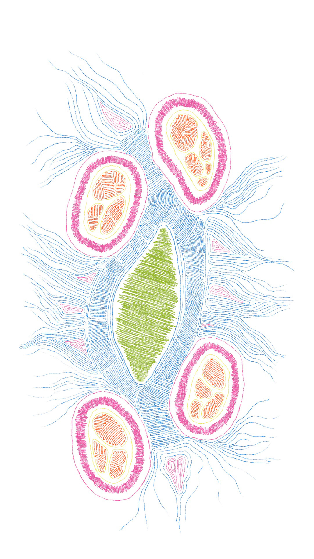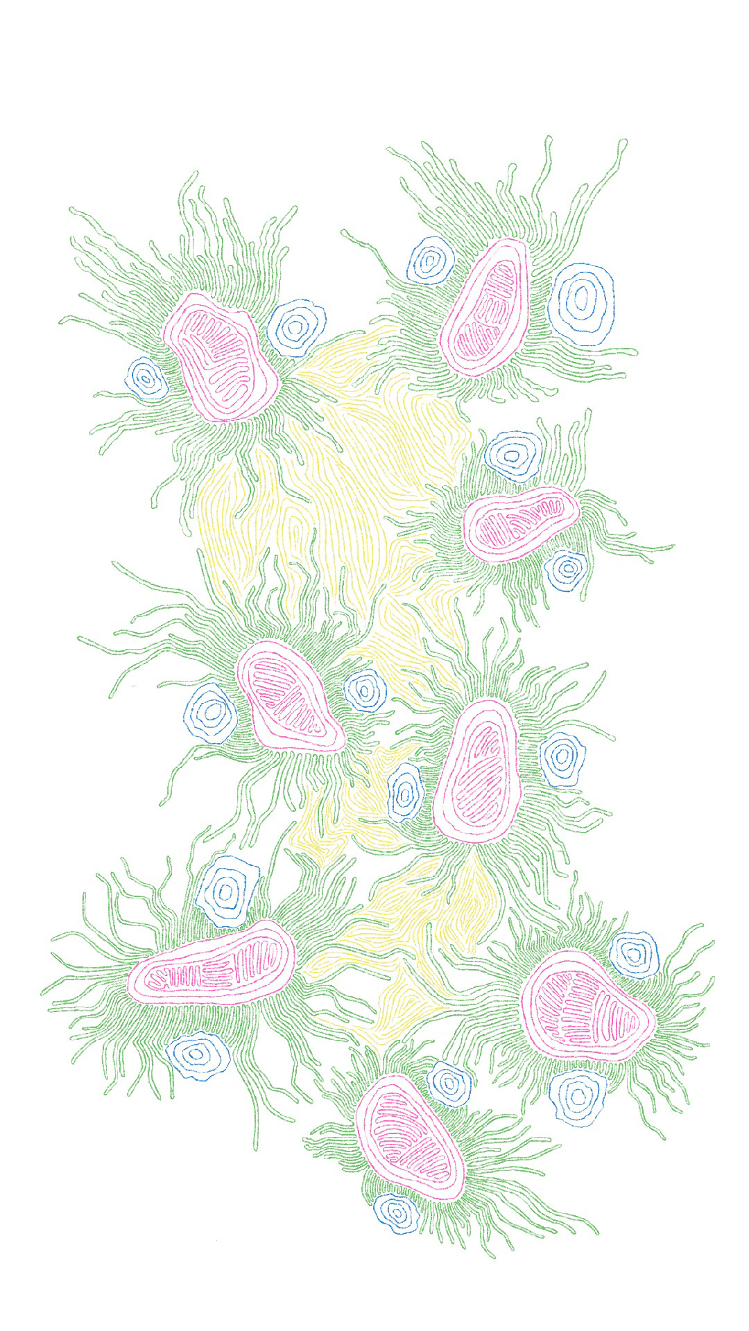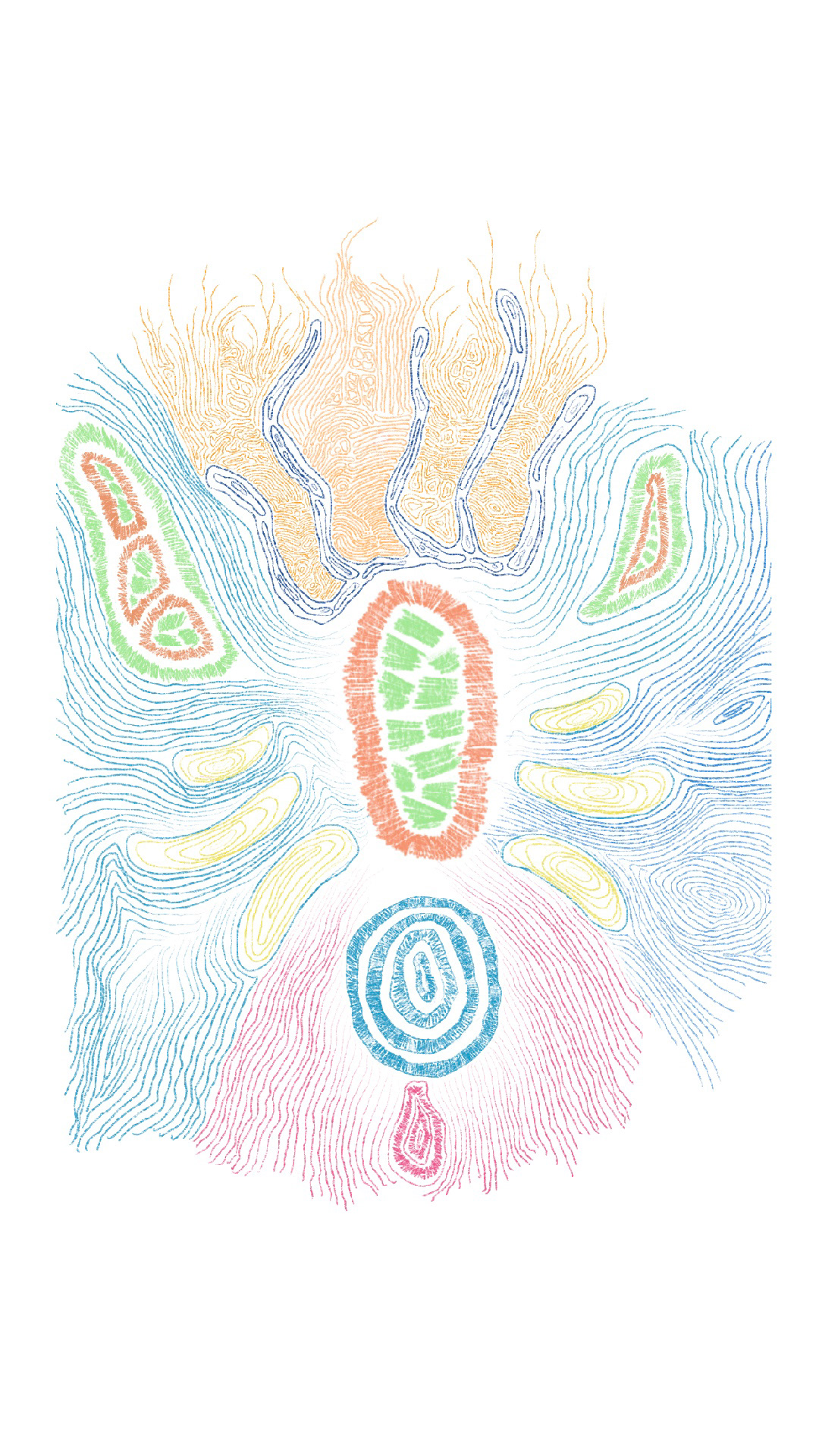 Nacida de mi experiencia con la ansiedad, esta obra surge de sentir cada parte de mi cuerpo como bajo un microscopio: células, pulsos, energía vibrando sin descanso. Dibujar se volvió una manera de calmar esa intensidad y traducir lo invisible en imágenes. Hablan de lo íntimo, la fragilidad y la presión interior, pero también de la fuerza que nos conecta y late bajo la superficie. Un viaje personal que busca resonar con quienes hayan sentido esas mismas frecuencias ocultas en su propia piel.